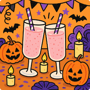 ご友人とのハロウィンパーティーで、苺のドリンクを囲んで乾杯